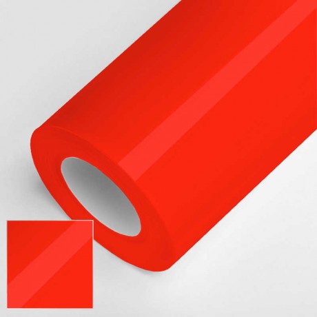 Vinyle rouge fluorescent, teinté dans la masse colaminé avec un blanc de soutien, parfaitement adapter pour l'affichage promotionnel, intérieur et extérieur courte durée.